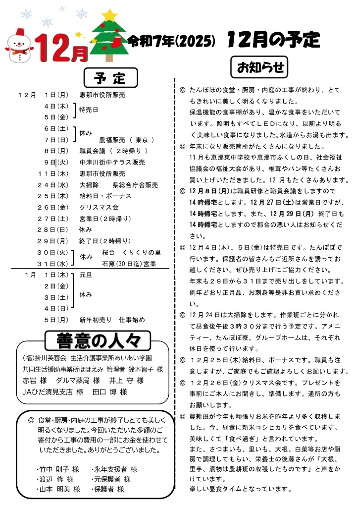 社会福祉法人 たんぽぽ福祉会(恵那たんぽぽ)